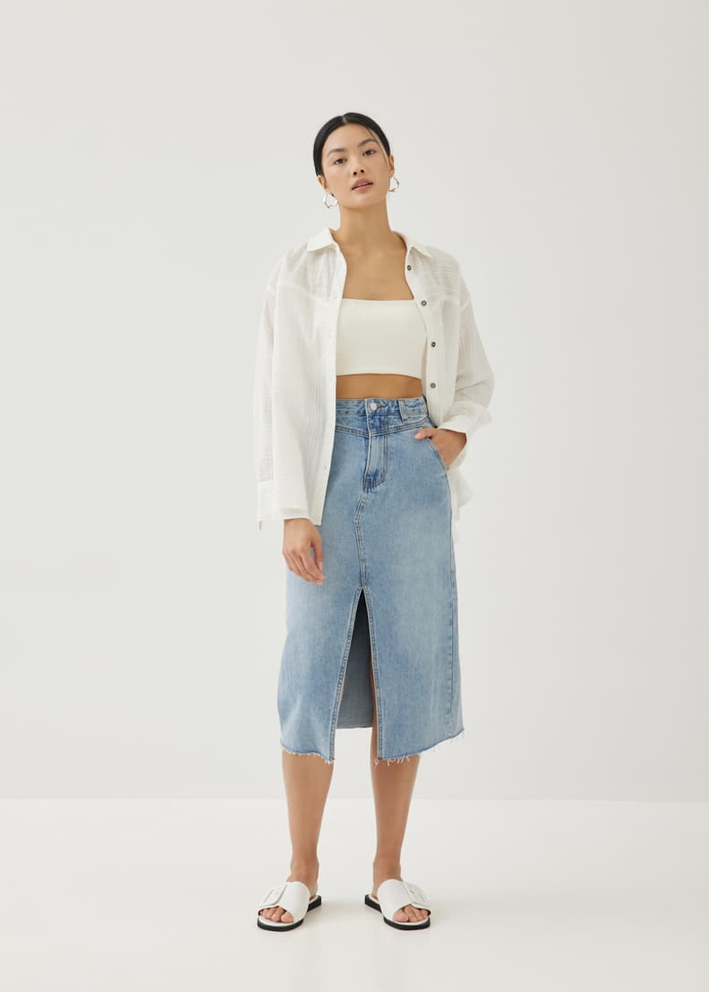 For you to wear when your outfit calls for an upgrade. In a loose fit, this textured cotton shirt features a collared neckline and cuffed long sleeves. Comes with a button down front closure.